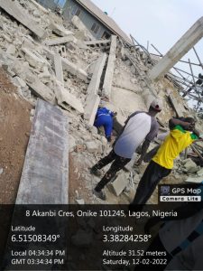 A 3 Storey building under construction located at the Akanbi Crescent, Yaba area of Lagos state has collapsed.