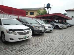 Items recovered from them include cash in foreign currencies, eight exotic cars ( a Toyota Avalon, 2 Toyota Camry cars, a Corolla 2004 Model, Lexus ES 350, Mercedes ML 350, Lexus RS 350, Toyota Venza), fifty-eight phones (58) of different brands, eight laptops, one driver’s licence and six ATM Cards.