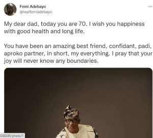 Actor, Film Maker, Lawyer, Brands Ambassador, Femi Adebayo, has extolled virtues of his father, Adebayo Salami, as the veteran actor clocks 70.