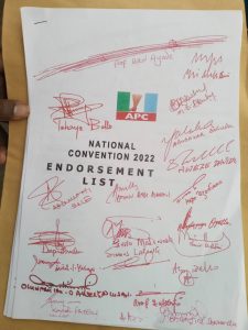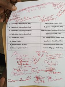 APC Unity List for the National Working Committee is out with all Governors elected under the platform of the party signed on the names agreed on.