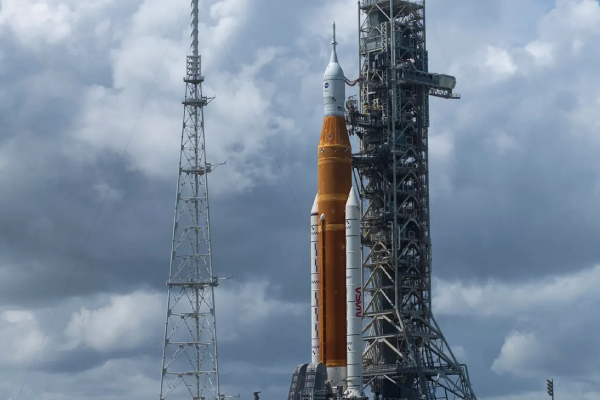 The Space Launch System rocket was originally set to launch from the Kennedy Space Center in Cape Canaveral, on Monday but was delayed after one of the rocket’s engines failed to condition to the correct temperature.
