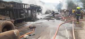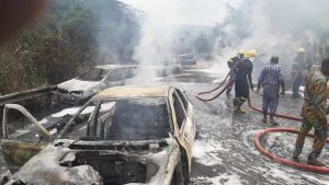 The accident which occurred at around 11:30 in the morning was as a result of a Diesel-laden tanker that suffered brake failure, causing explosion that affected many vehicles.