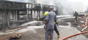 It took the intervention of the officials of the federal Road Safety Corps and Federal Fire Service to ensure movement of vehicles after the incident had caused gridlock for several hours.