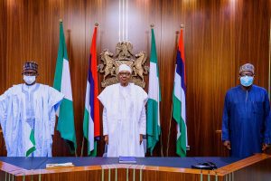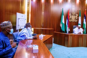 Mr Dogara alongside Governor of Yobe State, and Chairman of APC Caretaker Committee, Mai Mala Buni met with President Muhammadu Buhari at the State House, Abuja this afternoon.