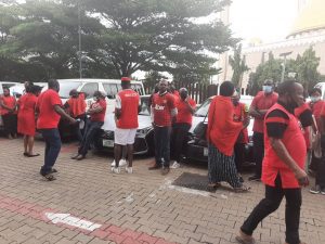The workers are protesting the withholding of their three months salaries over their non enrolment with the Integrated Personnel and Payroll Information System, IPPIS.