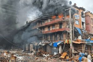 Over 14 buildings destroyed as fire razed popular Lagos market, 6 structures collapsed April 10, 2024