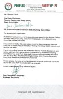 A press statement attributed to the NWC claimed the decision was taken pursuant to the powers of the committee under the PDP Constitution (as amended in 2017). It also stated that a caretaker committee had been appointed to oversee the affairs of the state chapter for three months or until a new executive is elected.