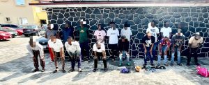 The suspects are: Tijani Olumide Ahmed, Balogun Olusola, Ukuhor Richie Ifemeluona, Ologun Damilola, Adetokunbo Yusuf, Olubiyo Timilehin, Oyegoke Gafar Olaitan, Agarawu Farug Okikiola, Kazeem Oluwadamilare Adebayo and Salau Rahmon.