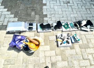 Cars, laptop computers, mobile phones, and charms were among the items recovered from the suspects.
