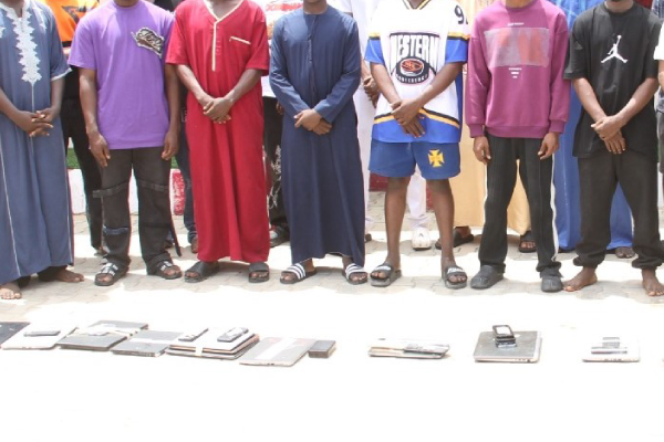 The suspects, Ismaíl Nura, Suuleyman Ayeh, Usman Abdulrazaq, Emmanuel Chigozie, Akabe Seth, Daniel Imoter, Abdulganiyu Jimoh, Jafar Abubakar, Usman Nuraddeen, Mohammad Adnan, Abubakar Abusufyan, Abdulmalik Ibrahim, Abubakar Sadiq, Daniel Masamu, Abdulrasheed Abdulsamad, Issac Dosunu, Nuraddeen Ogunbiyi, Onyeyemi Kaleem, Miracle Joseph, Danjuma Musa, Ibrahim Mubaraq, Yusuf Salihu, Lawal Ibrahim Edebo, Abdulmajeed Suleiman and Dauda Abdulhamid were arrested following weeks of surveillance linked to their alleged involvement in internet fraud, identity theft, and financial scam.