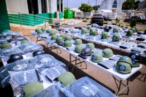 The equipment includes two state-of-the-art drones, 10 Hilux 4×4 vehicles, 40 motorcycles, 400 bulletproof vests and 400 bulletproof helmets.