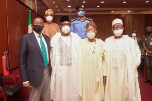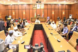 The Federal Government’s delegation included Ministers of Information Lai Mohammed, Interior Rouf Aregbesola and Police Affair Mohammed Maigari Dingydi as well as National Security Adviser Babagana Monguno and Inspector General (IG) of Police Mohammed Abubakar Adamu.