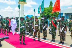 After inspecting a Guard of Honour by military personnel, the Gambian leader proceeded to Daura to condole with the Buhari family and the Emir of Daura (Dr.) Umar Faruq Umar.