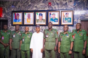The governor of Kogi State, Usman Ododo, held a high-level security meeting with the Chief of Defence Staff, General Olufemi Oluyede; the Chief of Army Staff, Lieutenant General Waidi Shaibu; the Inspector General of Police, Kayode Egbetokun; and the Director General of the Department of State Services, Mr. Tosin Ajayi, as part of ongoing efforts to strengthen security across the State.