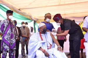 The Wife of the Governor, Erelu Bisi Fayemi; Speaker of the House of Assembly, Rt. Hon Funminiyi Afuye and a representative of the State Council of Traditional Rulers/ Attah of Aiyede-Ekiti, HRM Oba Abdulmumin Orisagbemi and some members of the public also received the vaccine at a brief ceremony, at the Fajuyi Pavillion, Ado-Ekiti.