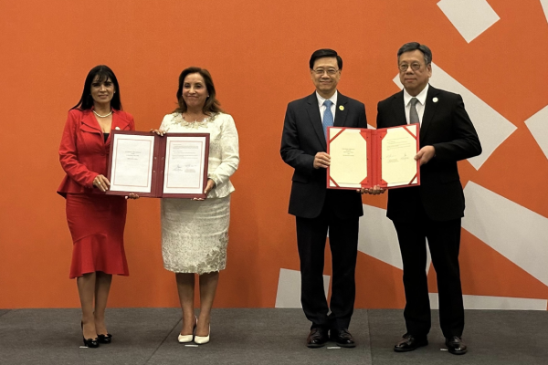 The FTA was signed in the presence of the CEO, Mr. John Lee, the President of Peru, Ms. Dina Boluarte, the Secretary for Commerce and Economic Development, Mr. Algernon Yau, and the Minister of Foreign Trade and Tourism of Peru, Mrs. Úrsula Desilú León Chempén.