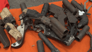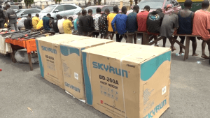 Among the exhibits recovered from the suspects are these different brands of vehicles, cache of arms and ammunition, point of sale machines which the kidnappers use in collecting money from their victims, fake EFCC vests and Biafran currencies