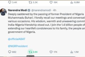 Indian Prime Minister, Narendra Modi, has expressed his sadness over the death of former President, Muhammadu Buhari.