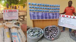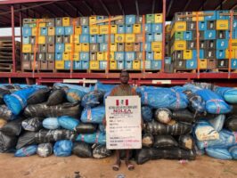 In Edo state, “NDLEA operatives working on actionable intelligence on Saturday, 11th April, intercepted two long trucks marked LUY 172 XC and LUY 281 XC with bags of processed skunk concealed among cartons of beer along Warrake road, Auchi. One of the trucks was found to contain 3,900 kilograms of skunk, while the second had 3,345 kilograms, bringing the total weight to 7,245 kilograms.
