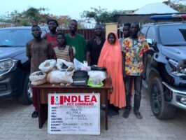 In Abuja, “A raid of the Tora Bora notorious drug joint by NDLEA operatives on Saturday, 11th April, led to the arrest of eight suspects, namely: Abubakar Muhammad; Ali Isiaka; Obed Moses; Ibrahim Musa; Attahiru Audu; Kabiru Buhari; Oloruntoba Samuel; and Ellah Gyandi. A combined total of 11.516 kilograms of skunk was seized from the suspects.”