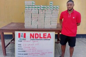 “A follow-up operation was conducted on Wednesday, 11th March at Idumota market, Lagos Island, where the actual owner of the consignment, Nnamdi Cyprian, was arrested. A search of his shop led to the discovery of a parcel already prepared for waybill delivery, containing 1,000 tablets of tramadol 250mg. Another raid at Idumota market on Friday, 13th March, led to the arrest of Nwanosike Kelvin and the recovery of 47,500 ampoules of pentazocine injection from his shop.”