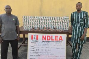 In another interdiction operation, “NDLEA operatives arrested two suspects, Kalilou Simpara and Saidu Ibrahim, at Ebetu Ero, Lagos Island, where they recovered 68,000 pills of tramadol 250mg and 225mg after they had loaded the exhibits into their truck and prepared to transport them to the Benin Republic on Monday, 9th March.