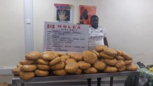 On the same day, the SOU operatives also arrested Anayo Lucky Ohabiro, 39, at Doyin bus stop, Surulere, Lagos, following credible intelligence and a total of 78 blocks of Ghana Loud, weighing 41kg, were seized from him.