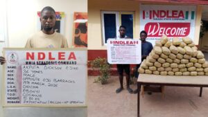 In a Sunday statement signed by the NDLEA spokesperson, Femi Babafemi, the suspect, Akputa Dickson Ejike, was arrested by operatives attached to the Murtala Muhammed International Airport (MMIA) Strategic Command of the Agency at the Ojo area of Lagos, following an intelligence on trans-border criminal activities.