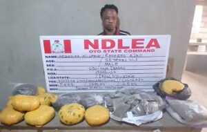 In Oyo state, Adetunji Ahmed Abayomi, 33, was nabbed on Thursday 15th January at Moniya, Ibadan, with 321 litres of skuchies, and 2.5kg Colorado, a synthetic strain of cannabis, while Rasheed Ajao, 28, was caught same day at Odo-Ona, Ibadan, in possession of 5.4kg Scottish Loud; 1.696kg skunk and 2.5kg Colorado, bringing the total weight to 9.696 kilograms.