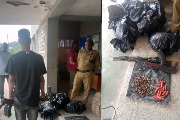 Officials of the National Drug Law Enforcement Agency (NDLEA) have arrested a 25- year -old man, Destiny Agbaijoh, with two guns and cartridges along Ore-Okitipupa road.