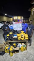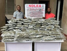 Lagos State: Jamiu Kunle Kardoso and Oriyomi Waliu arrested with 65.15kg of Canadian Loud, while Taofeek Moraina was caught with 141kg of Ghana Loud.