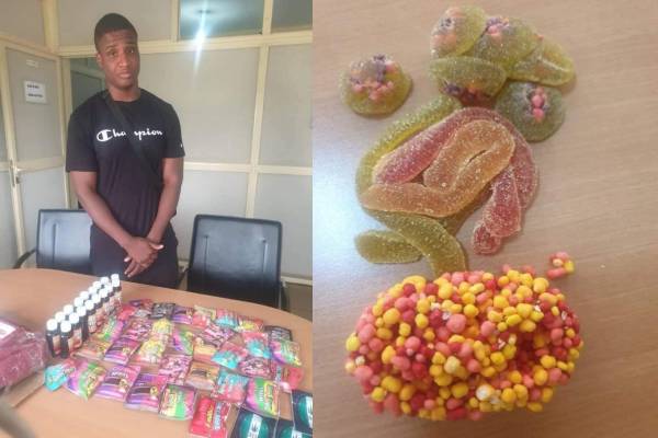 Arnold Maniru, a 22-year-old youth corps member, has been arrested by operatives of the National Drug Law Enforcement Agency in Abuja for smuggling 4 kg of poisoned candies from the United Kingdom, just as officers have intercepted cookies laced with drugs bound for the United Arab Emirate in Lagos.