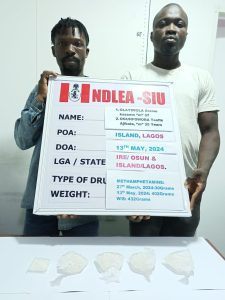 Two other persons: Olayiwola Aremu Kazeem, 37, and Ogunfowora Taofik Ajibola, 35, were arrested on Lagos Island in a different raid by NDLEA officers with 432 grams of methamphetamine recovered from them.