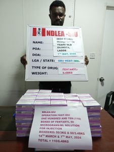 In another raid by the special operation unit, no fewer than 1,100 ampoules of lethal synthetic opioid, fentanyl, weighing 6.48kg were recovered from a member of a drug trafficking syndicate, 34-year-old Ikeh Stanley Ifeanyi at the popular Idumota market in Lagos Island.