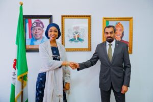 The Honourable Minister of Arts, Culture, Tourism, and the Creative Economy, Hannatu Musa Musawa, received the UAE Ambassador to Nigeria, His Excellency Salem Saeed Musabbeh Al Mahyoubi Al Shamsi, at the Ministry’s headquarters in Abuja. The meeting was attended by the Ministry’s Permanent Secretary, Directors, and senior officials, alongside a high-level UAE delegation.