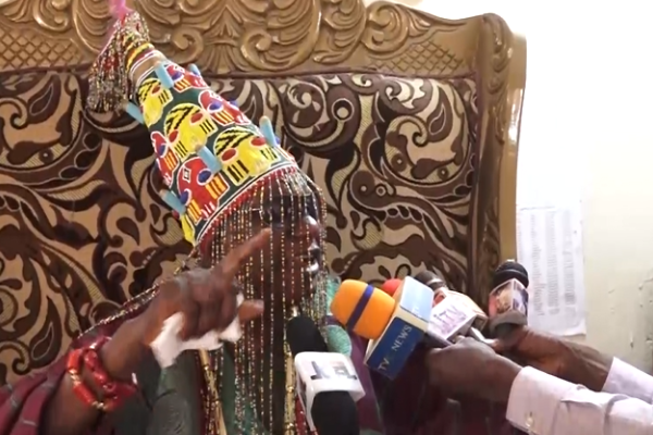 The traditional ruler of the town, Oba Olufaderin Adetimehin, dressed in royal regalia to mark the annual event, designed to mark the end of the community’s traditional calendar year and usher in a fresh one.