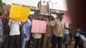 The workers who protested at the gate of the institution carried placards with various inscriptions chanted solidarity songs to drive home their demand.
