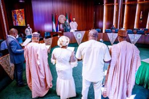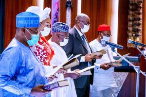 President Muhammadu Buhari has sworn in chairman and commissioners of the Federal Character Commission at the Council Chambers, State House, Abuja.