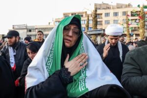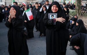 According to Aljazeerah, the mourners, who gathered on Sunday in Enghelab (Revolution) Square, dressed mostly in black and some crying, were waving Iranian flags and holding photos of Khamenei, as the US-Israeli attack continued into a second day.