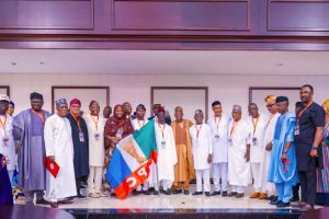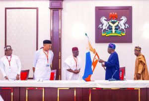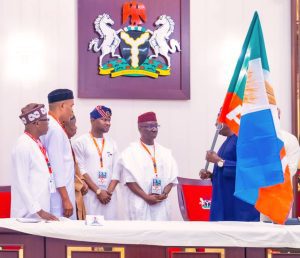 The President also presented the party’s flag to the Governorship Candidate and his running mate.