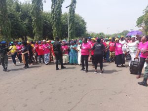 Women groups protesting the rejection of gender bills by the two chambers of the National Assembly on Tuesday gained access into the first gate.