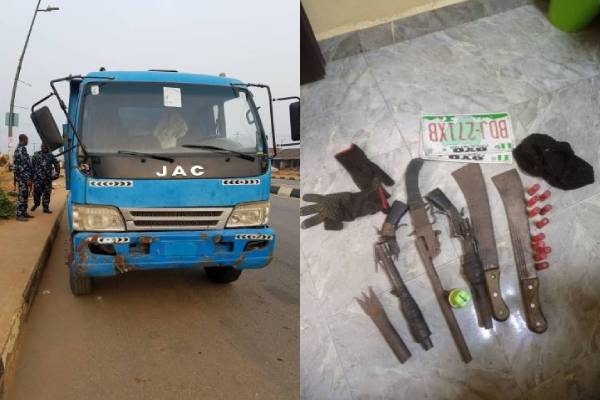Men from the Lagos State Rapid Response Squad (RRS) have rescued a tanker driver and his assistants from the clutches of gun-wielding thieves on Lekki – Epe Expressway while also recovering three weapons, 11 live cartridges, and machetes from the robber’s vehicle.