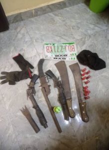 The robbers abandoned their vehicle, guns and machetes before escaping into the bush.