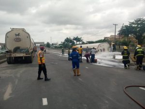“The entire scene of incident have been blanketed by LRU Fire Unit and LASG Fire Service while awaiting the arrival of an empty tanker for transloading,” the statement added.