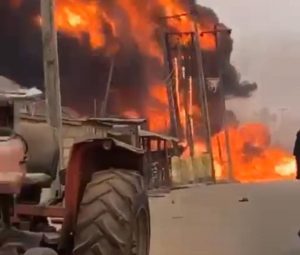The tanker, which carried Premium Motor Spirit also know as petrol, was at a filling station in the community to transmit into the underground tank of the filling station through a big pipe when it caught fire.