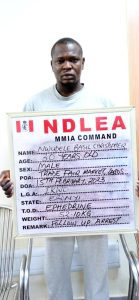 At the Nnamdi Azikiwe International Airport, NAIA, Abuja, vigilant operatives of the Agency on Monday 13th February intercepted a 29-year-old Apeh Kelvin Ogbonna while attempting to board Turkish airline flight TK0624 going through Istanbul to Cyprus, with 4.5 kilograms of methamphetamine concealed in false bottoms of his travelling bag. The suspect claimed he was running a boutique business in Enugu before he decided to travel to Cyprus for a degree in Business Administration.