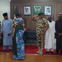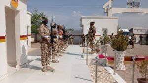 Earlier, the Theatre Commander is received with a guard of honour at the Gibson Jalo Cantonment, headquarters of the 23 Brigade, Nigerian Army, in Yola.